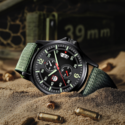 The lightweight nylon strap offers all-day comfort, while the military design exudes confidence and rugged charm. Its versatile look pairs perfectly with casual outfits, making it a must-have for any occasion. Reliable, functional, and effortlessly stylish, this watch is ideal for anyone who values practicality without sacrificing aesthetics. Elevate your wrist style with the sporty military quartz watch, the ultimate blend of simplicity and sophistication.